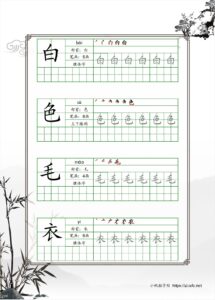 汉字书写 – 按笔顺书写PDF文件中的汉字。 (Please click the link and use the PDF file to help with Chinese character writing. Please follow the correct stroke orders)